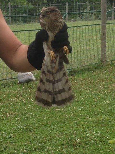 The cucumbers, peppers, blueberries, and basil are all ready to harvest and we’ll be bringing them to the Tilly and Salvy’s farmstand this weekend. Our blueberries are divided into 3 separate zones - early, mid and late. Each is covered with netting and the ripeness of the fruit is directly related to the motivation of birds to get through the netting. This little guy - a sharp shinned hawk got into the blueberry patch by digging underneath the netting and could not get out, so we had to carry him to safety.